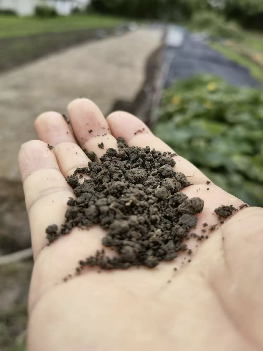 我用手抓一把闻一闻,一股土壤的芬芳味,没有异臭,而且富有弹性,这和我在活力农耕课堂上学习的富含腐殖质土壤的特征相像。从这一捧土真实的感受到了活力农耕的神奇与可行。