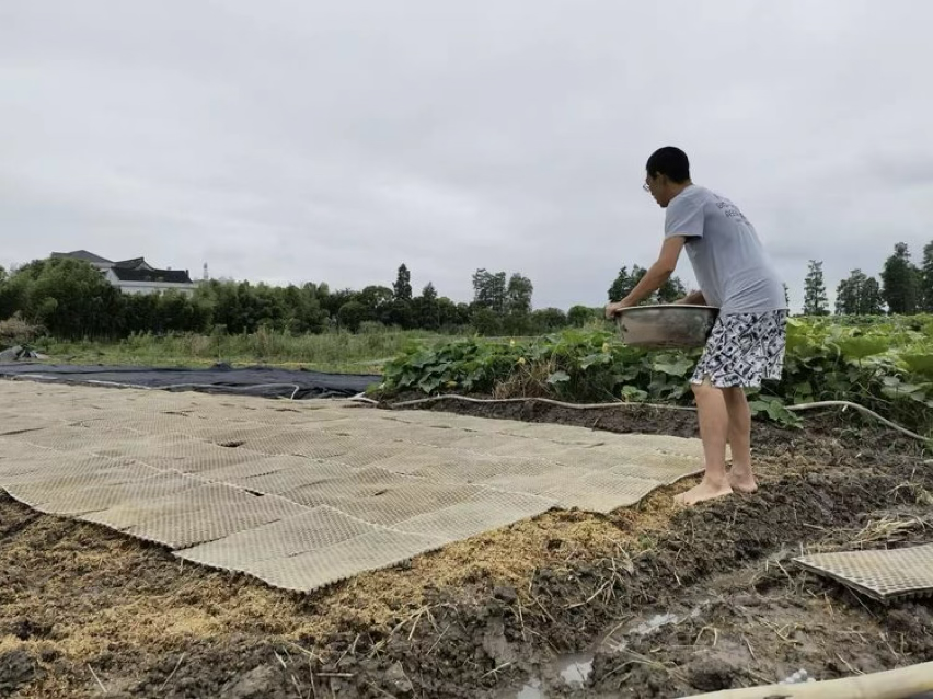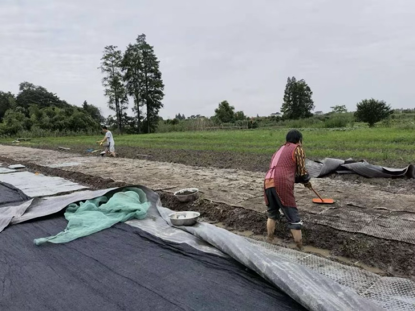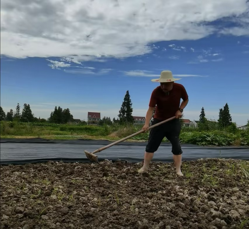 今年,柳老师尝试着旱地育秧,首先需要把土地平整好,便于放置育秧盘。
