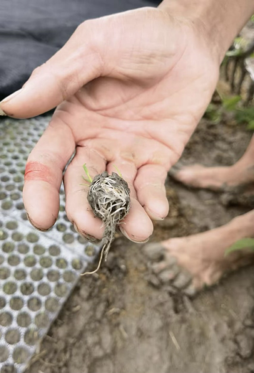 活力农耕的稻种,土壤,守护者,种植出的秧苗果然不一样,根系太发达了,我听过点先知阿道夫.史坦纳的《农业八讲》,如果按照他的预知去理解弱弱的秧苗根系为何如此发达就不足为怪了。