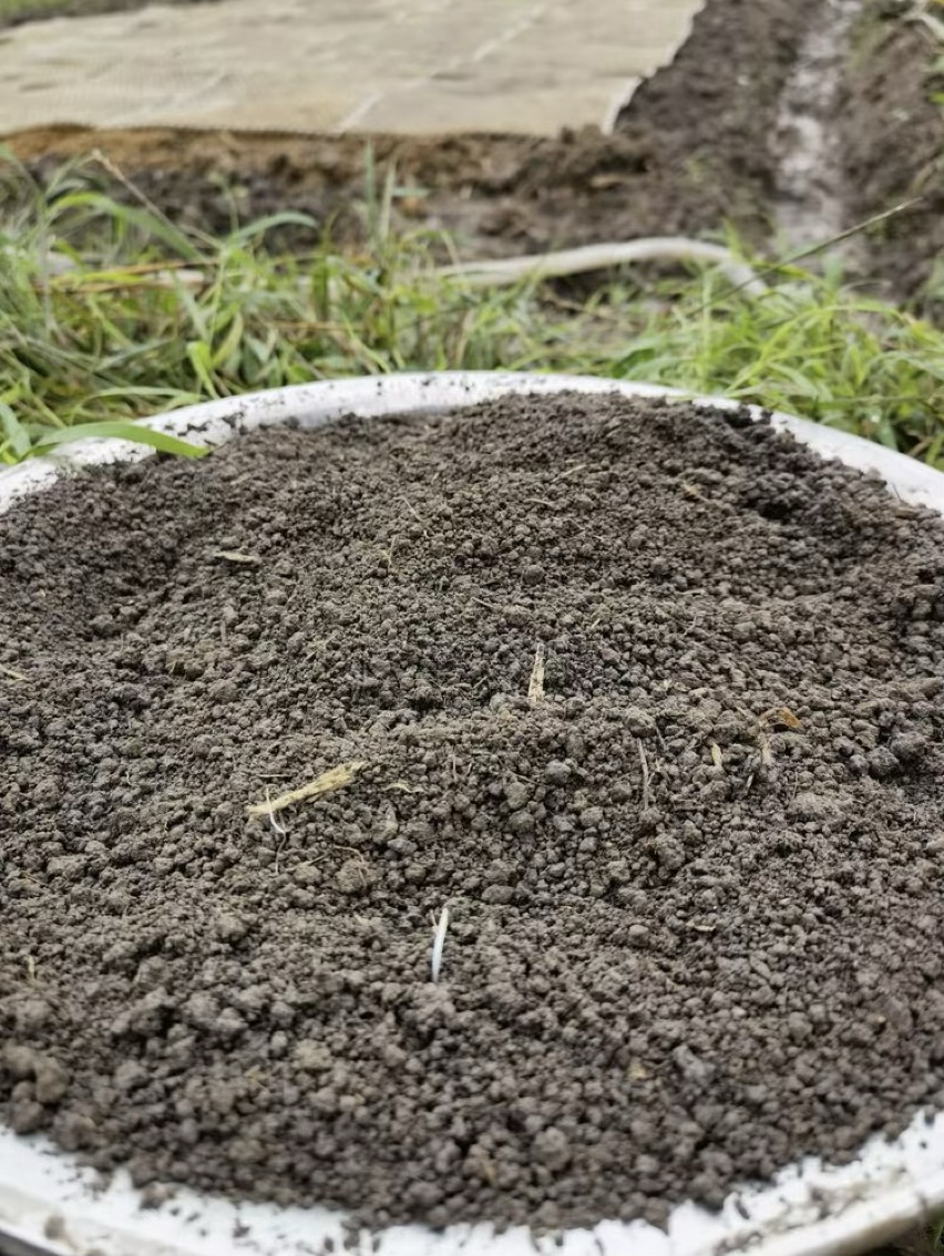 这就是我们从土地里挖出的土,直接用筛子筛过后的粘土颗粒,这个是很好的土壤,团粒结构很明显,如果是化学耕种方法,根本不可能直接从田地里外出来,筛一筛就能得到这么好的颗粒土。
