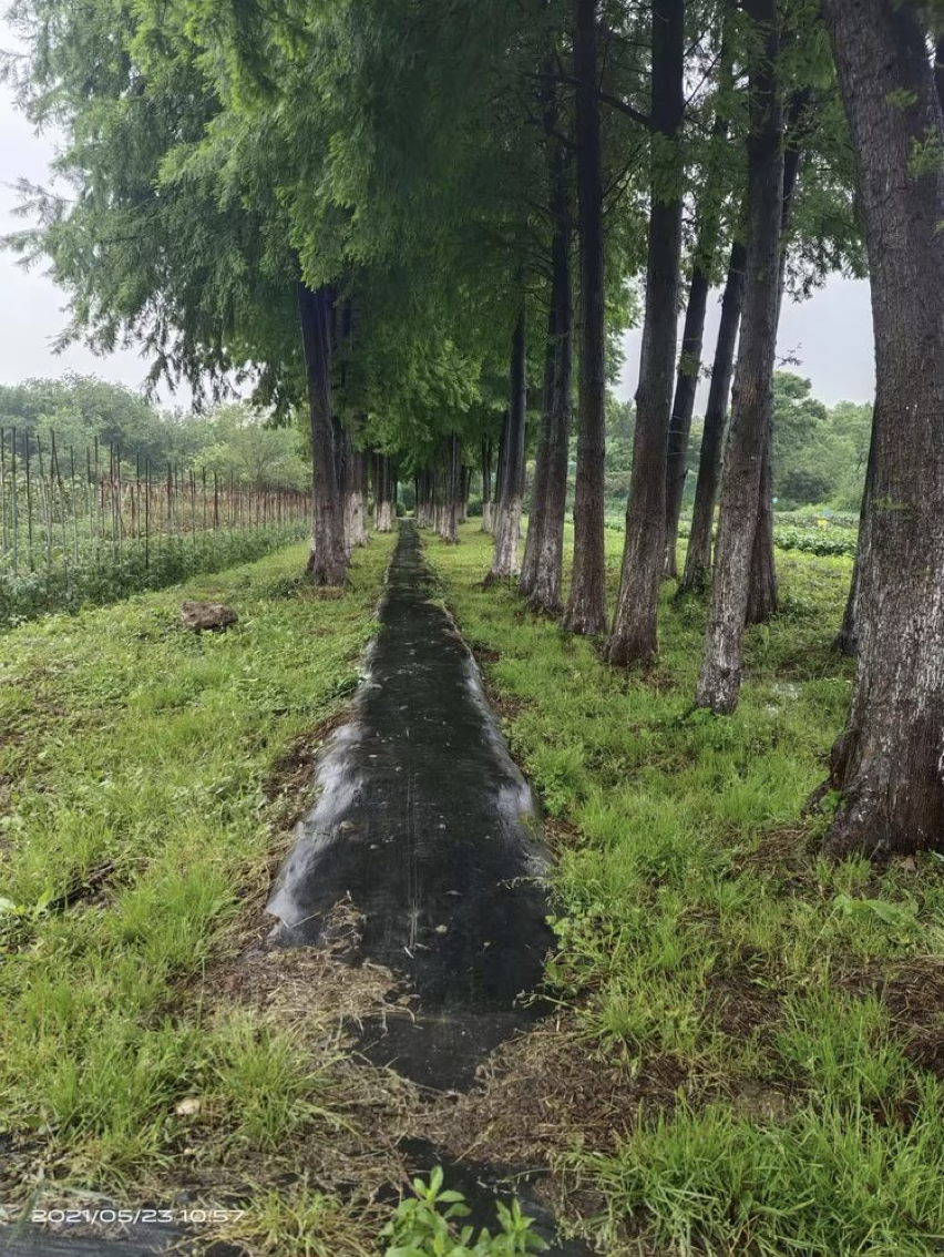 雨天的田埂在地膜的保护下,没有那么泥泞,但我想这种方式可能更多为了参观方便所设吧,这样晴天只要不下地,鞋子也不会被露水打湿。