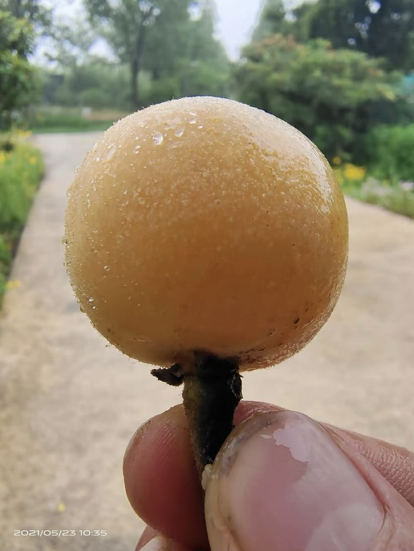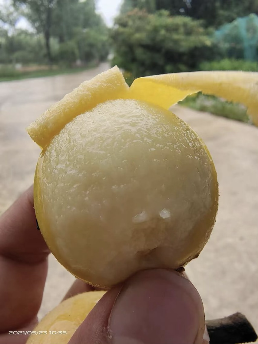 阿汤哥就在果树下等我,少了寒暄直接在阿汤哥的默许下采摘了一颗枇杷,从颜色和形状上来看应该是白玉枇杷,白玉枇杷果的产地就在苏州境内,以太湖边的东山、西山产最有名,果实呈现椭圆形,果肉十分白嫩且肉质肥厚,味道酸甜可口,成熟期抗旱性强等优点,但过熟后风味变淡,宜适时采收。