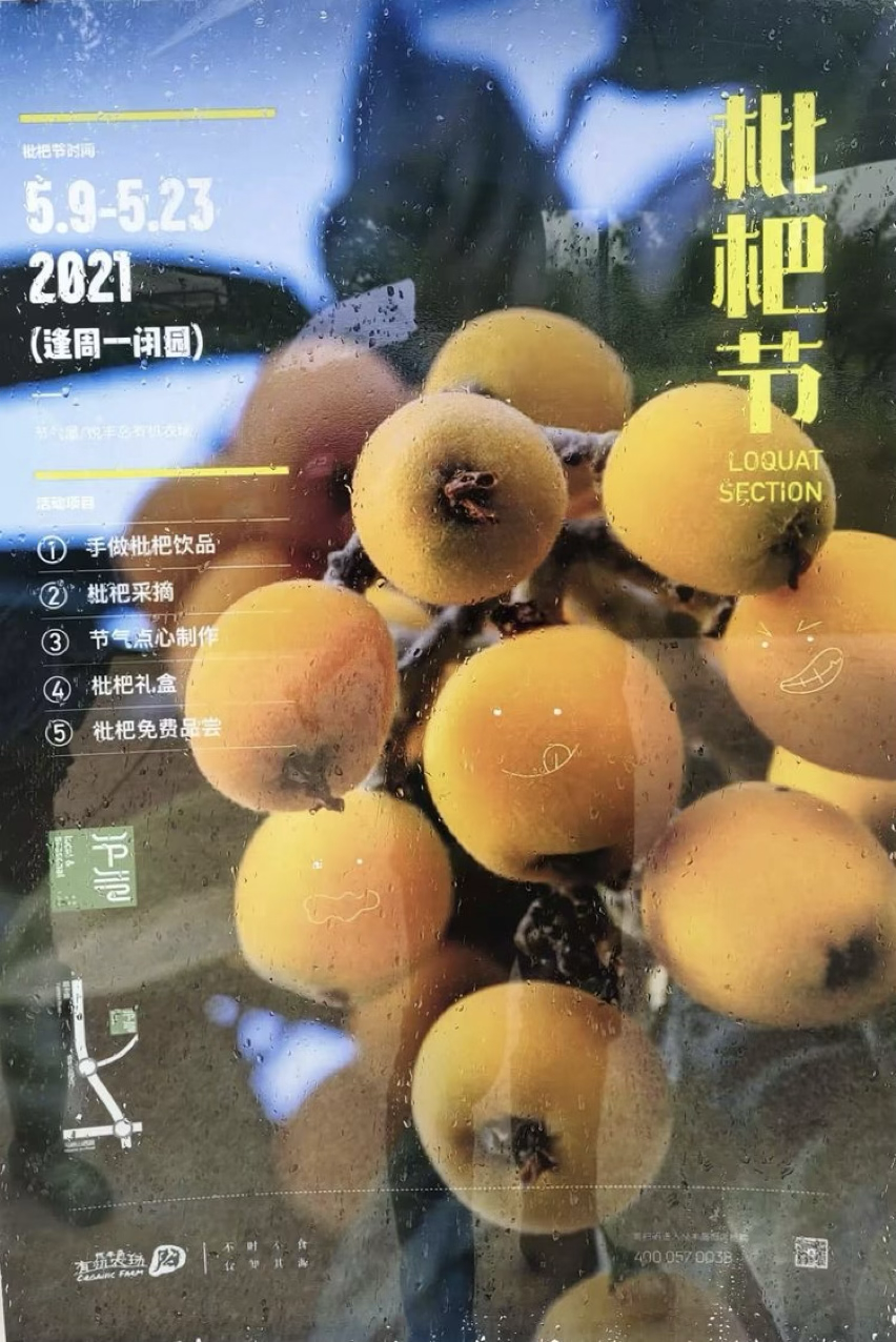 不知不觉中,已经有大半天时间过去,因为中午我还有其他的事,只能和阿汤哥就此告别,约定下次再来。走到门口一转头一张鲜艳的宣传画特别吸睛,黄澄澄的枇杷令我生津。悦丰岛下次再见。