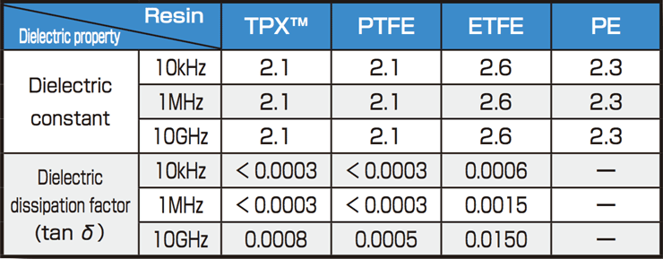 TPX分子中无极性基,因此具有优异的电气绝缘性,介电常数ε = 2.1,并且tan δ = 0.0008(在12 GHz),因此TPX非常适合高频率领域的应用,这就意味着在将来的5G高频时代,它有着很好的应用潜力。